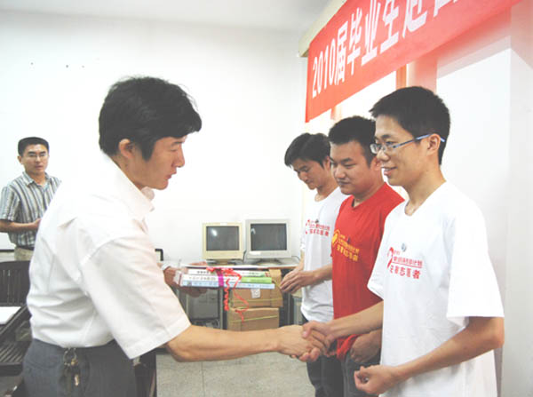 7月24日下午,我校召开2010届毕业生赴西部志愿服务欢送会。学校副院长彭代银出席欢送会并作讲话。校团委书记姚强、副书记张军,学生处副处长王红松,招生与就业处副处长孟庆全,中西医结合临床学院党总支副书记顾义俊等参加欢送会。