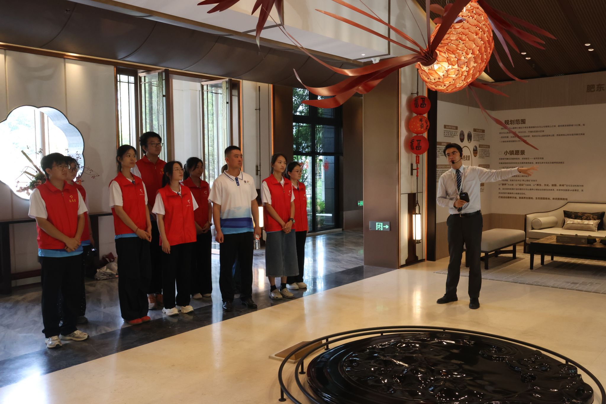 乡村振兴的生动实践,是青年施展才干的广阔舞台。实践团带着专业视角,深入乡村一线,为地方发展注入青春智慧。在肥东县先锋农场,队员们俯身田间地头,详细了解了农场的生产经营模式、农业科技应用以及带动农民增收等方面的情况。在众兴社区,队员们实地参观了社区的基础设施建设、公共服务设施以及特色产业项目,并与社区工作人员进行了深入交流。而在庐江县万山镇,文旅融合的创新实践更让队员们眼前一亮——一半山野民宿以“建筑美学+生态优势”激活乡村旅游,十里长冲文旅项目深挖自然与文化底蕴打造特色IP。“民宿要留住‘乡愁’,更要融入中医药养生理念”“文旅产品可以结合节气文化设计体验活动”,队员们与民宿负责人、镇政府工作人员深入交流,提出的十余条建议得到积极回应。