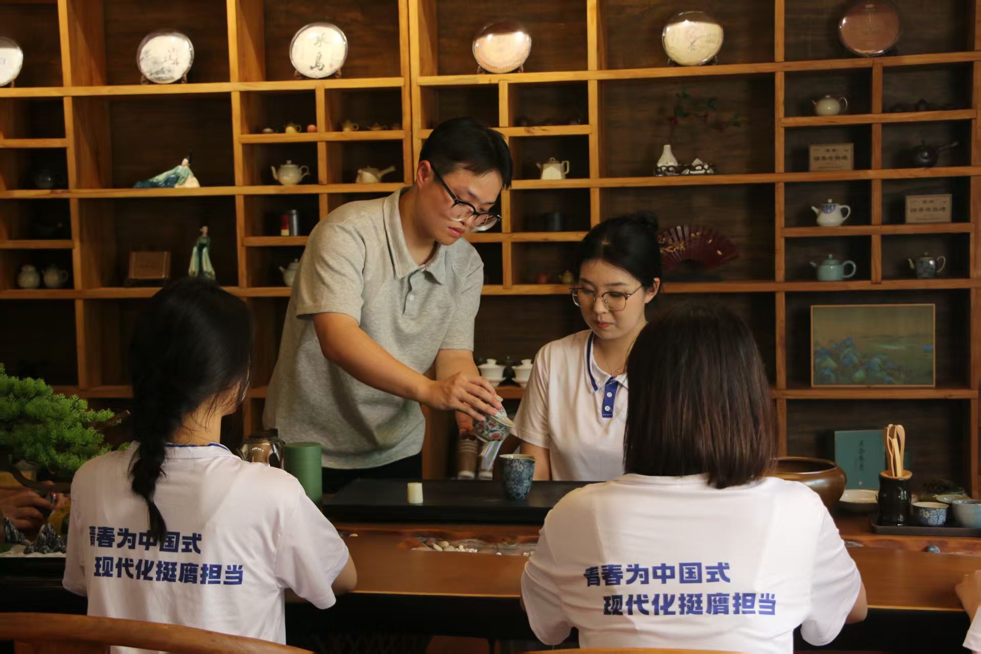 寻迹菌科秘境,揽胜茶博雅韵。实践队员先后走进广德市香菇科技馆和五合茶叶博览馆,开启一段别开生面的探索旅程。沿着产业介绍长廊漫步,队员们了解到杨滩镇种植香菇的悠久历史,看到香菇从菌种选育、菌棒制作到栽培管理,每一环节都离不开科技的赋能。踏入五合茶叶博览馆,丰富的文物与详实史料,静静诉说着五合茶的起源、历程及制法。队员们在老师指导下,学习温杯、投茶、注水等泡茶步骤,品味五合茶“叶肥芽壮,味厚香郁”的独特韵味。