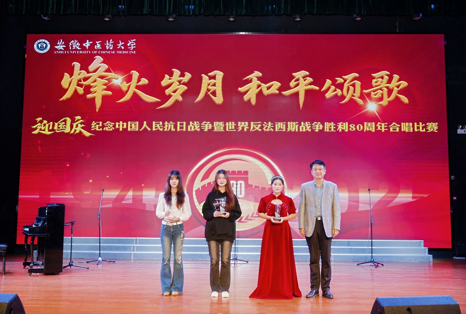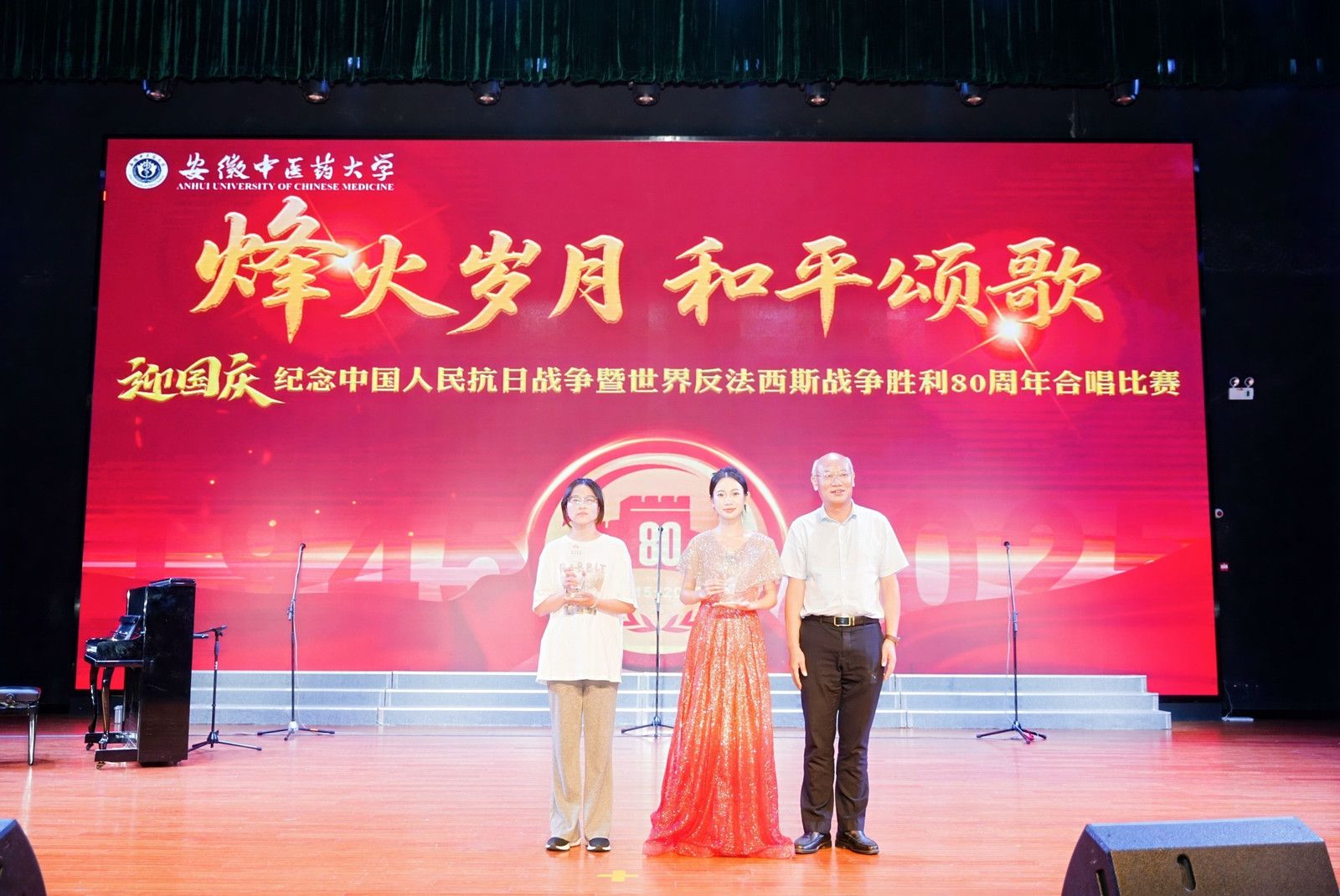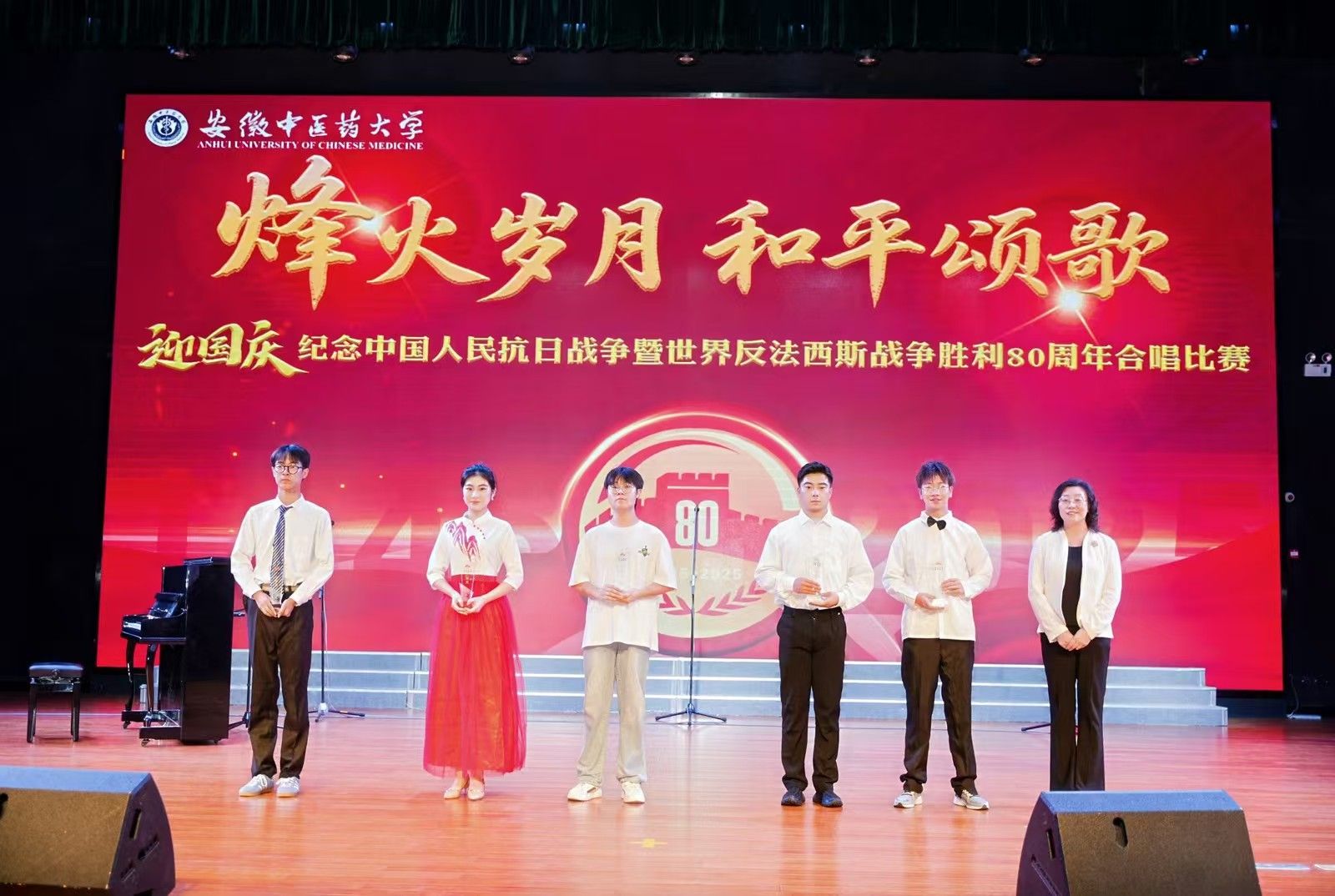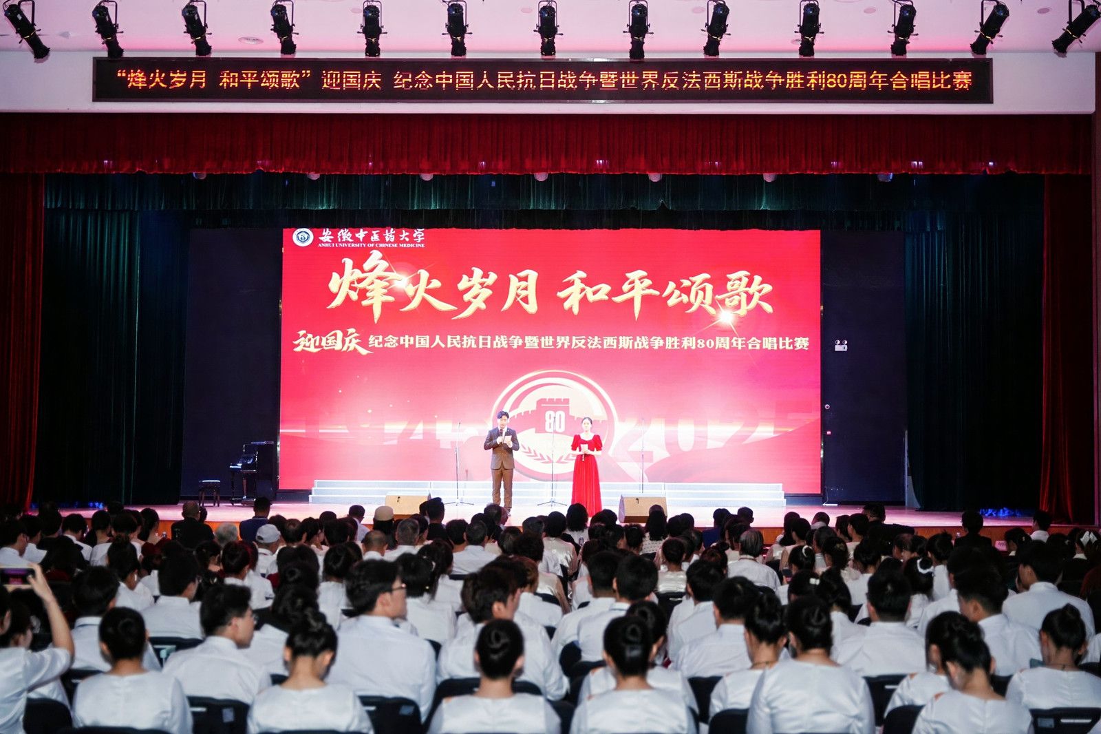 9月29日晚,安徽中医药大学少荃湖校区歌声嘹亮、气氛热烈,“烽火岁月,和平颂歌”迎国庆合唱比赛隆重举行。本次活动旨在纪念中国人民抗日战争暨世界反法西斯战争胜利80周年,弘扬爱国主义精神,凝聚奋进力量。校党委副书记周新发,校党委常委、副校长聂久胜,校党委常委、纪委书记、监察专员詹灵杰,校党委常委、宣传部部长董玉节,校党委常委、组织部部长冯祥,以及各职能部门、二级学院负责人与600余名师生共同观看了演出。