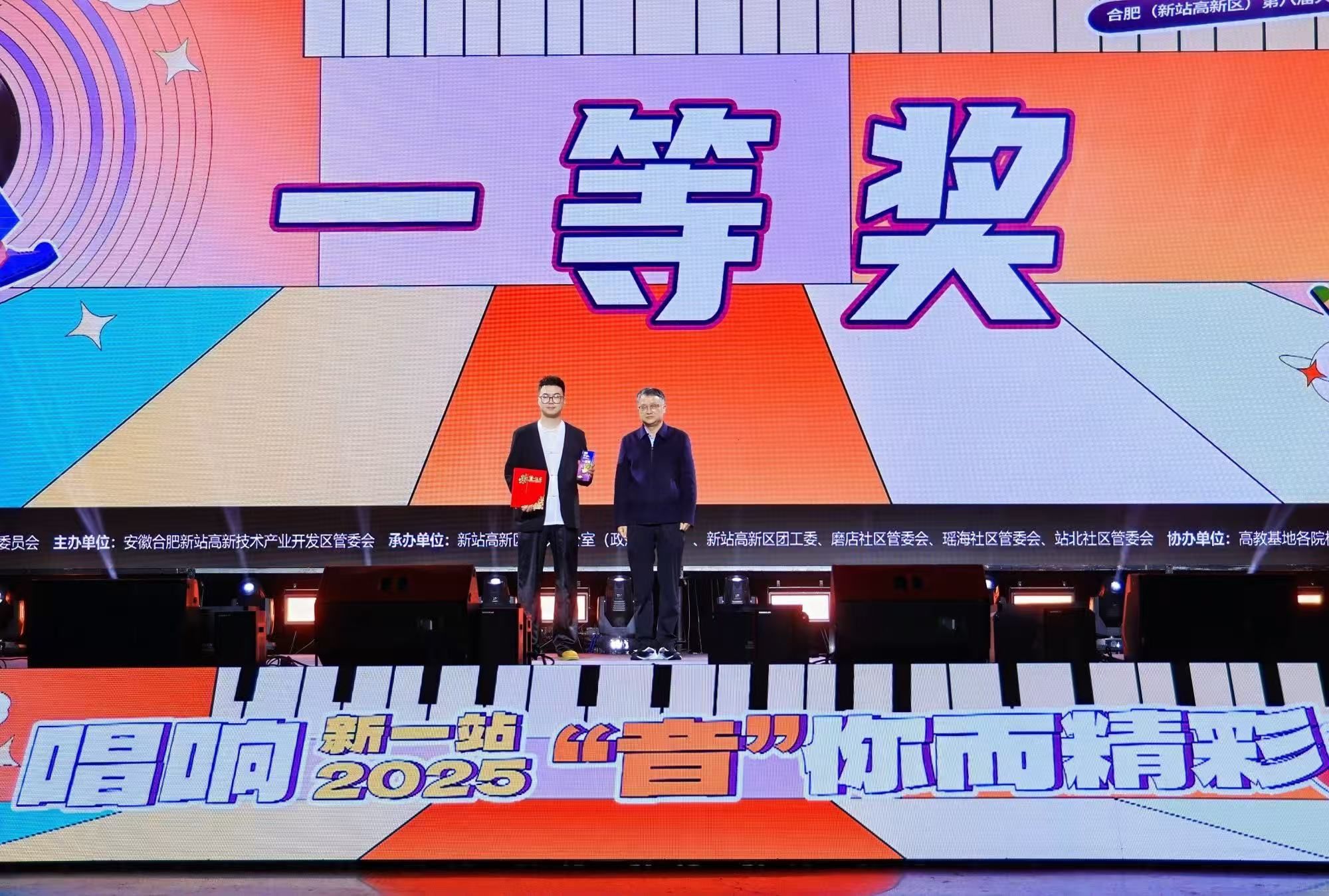 11 月 7 日,合肥新站高新区第八届大学生音乐节决赛在少荃体育中心体育馆圆满落幕。我校学子赵汉卿凭借扎实的演唱功底与出色的舞台表现脱颖而出,斩获本次大赛冠军。