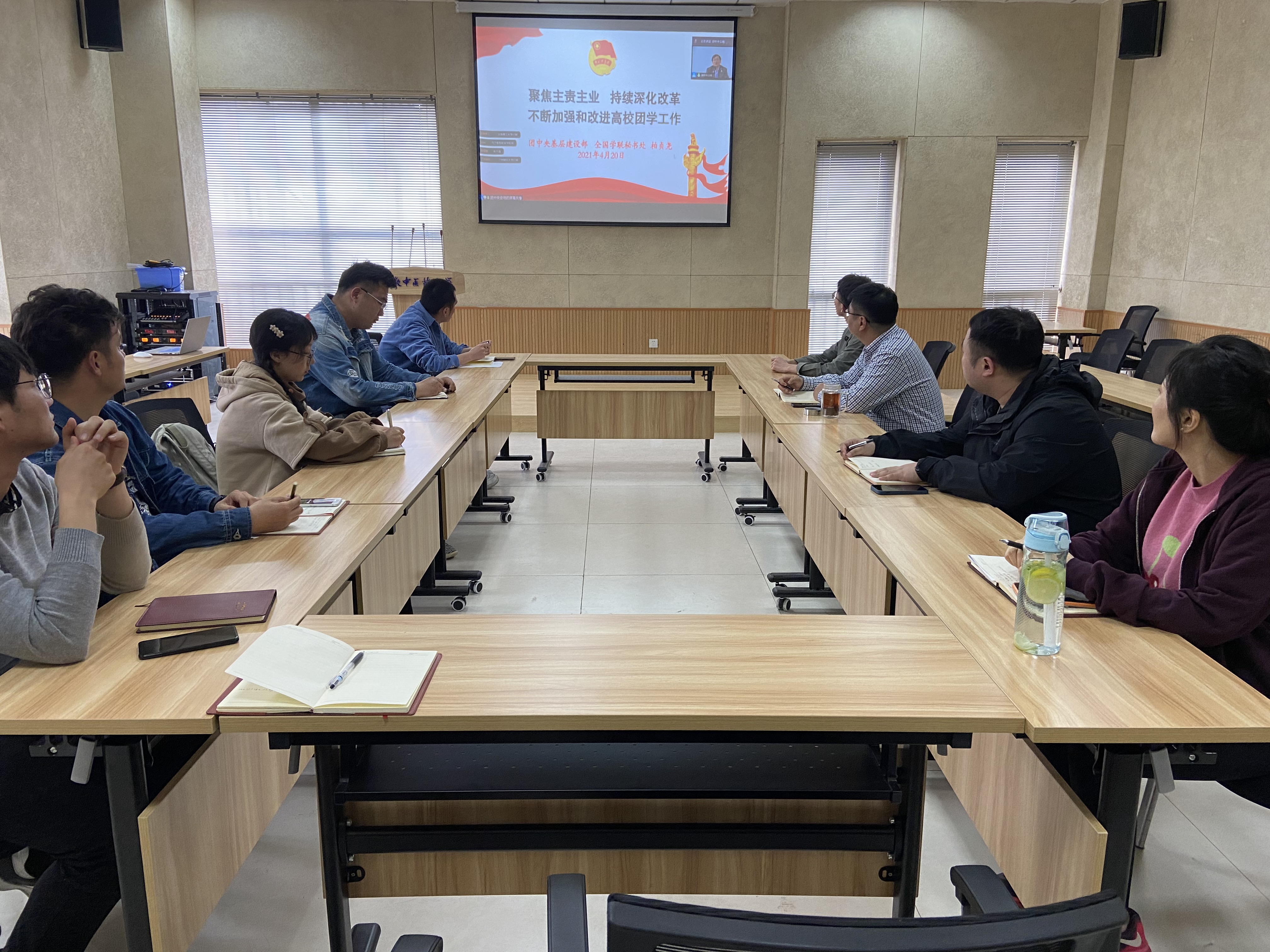 为深入贯彻习近平总书记关于青年工作的重要思想和关于教育的重要论述,全面贯彻“全团抓学校”工作部署。团中央基层建设部、全国学联秘书处共同举办了高校共青团专题培训网络视频会议。4月20日下午,我校团委主要负责同志、二级学院分团委书记、校学生会和研究生会轮值主席参与培训。