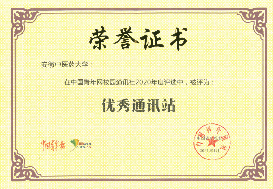 日前,由中国青年网开展的2020年全国高校通讯站年度考核评优揭晓,我校荣获“优秀通讯站”称号,这也是我校连续三年获此殊荣。此外,学校宣传统战部尤志成老师获评2020年度通讯站“优秀指导教师”。