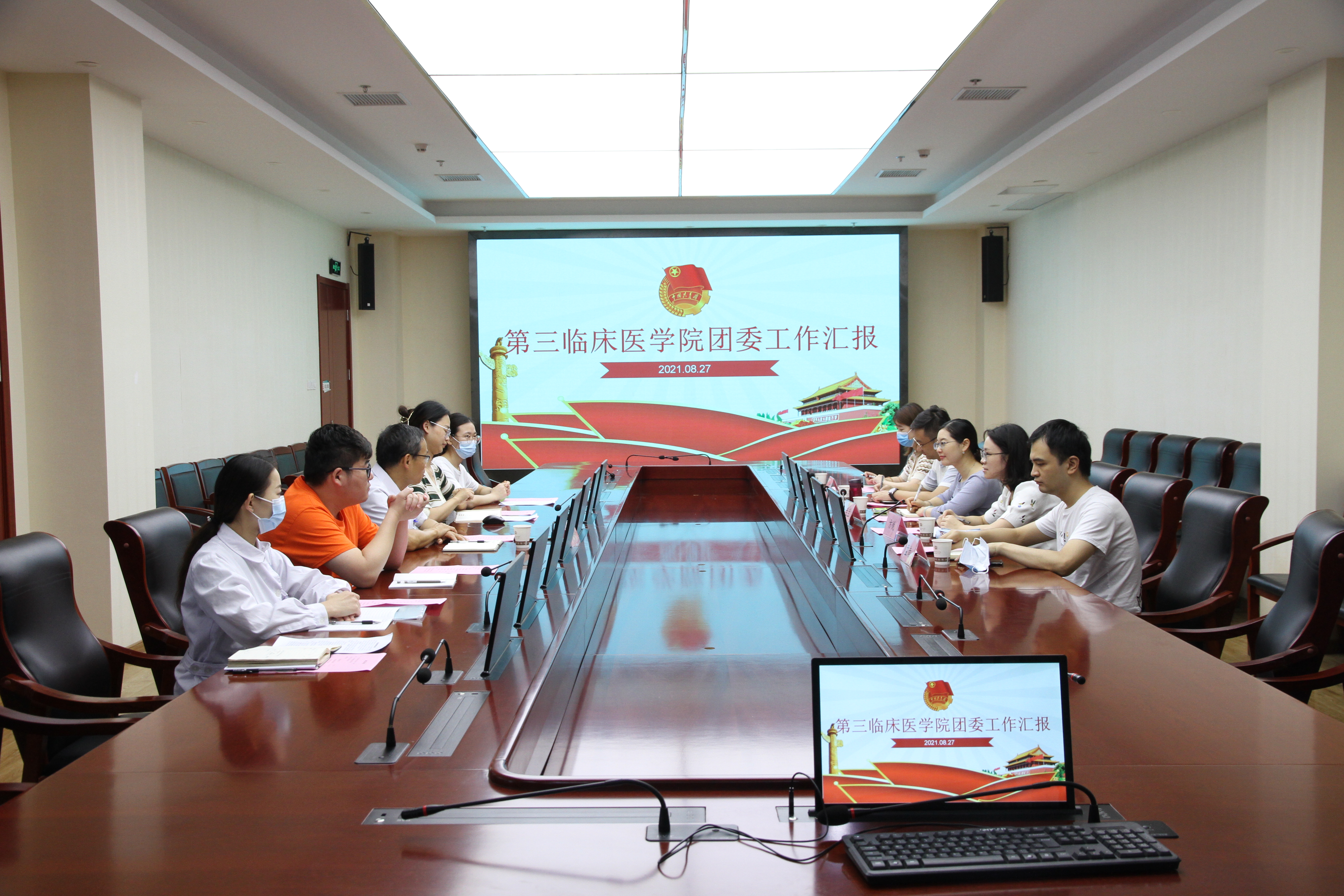 为促进学校和附属医院的团学工作沟通交流,进一步推动共青团工作良好开展,8月27日,校团委书记叶兰兰带队至第三临床医学院调研指导共青团工作开展情况。院党委副书记翟从永,校团委、院团委全体人员参加会议。