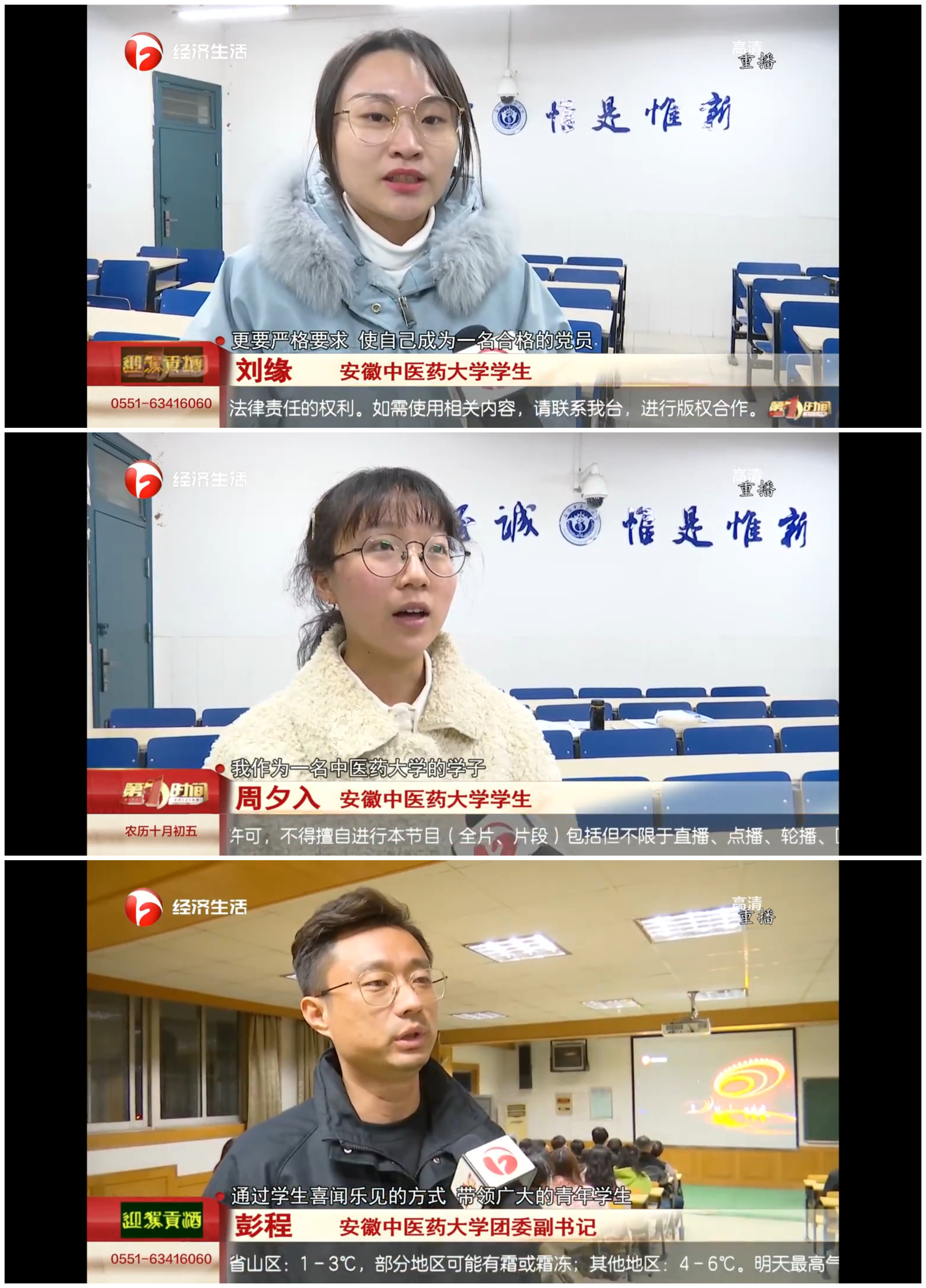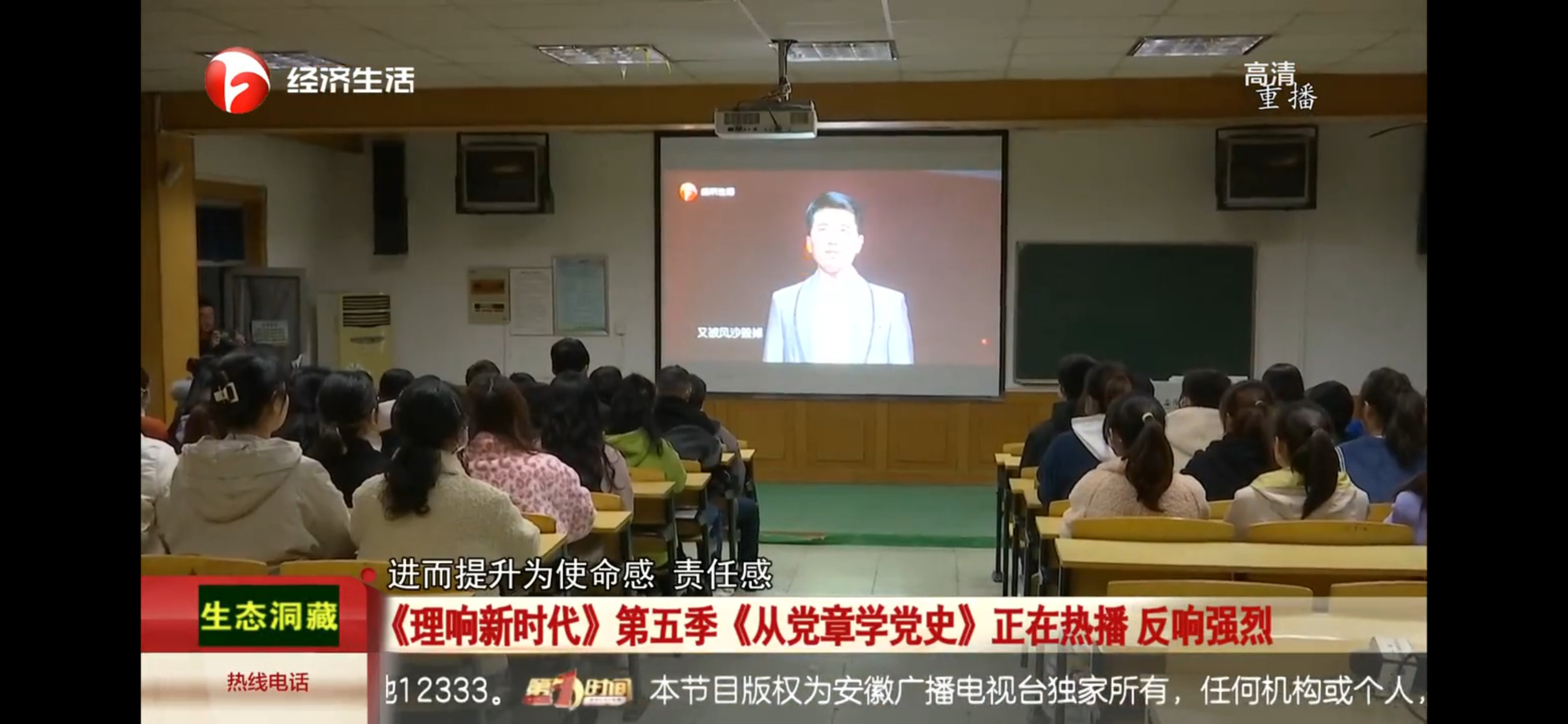 为进一步推进我校团员青年“学党史、强信念、跟党走”,我校于11月12日组织学生观看了《理响新时代》第五季《从党章学党史》节目,并接受安徽卫视经济生活频道《第一时间》专题采访。