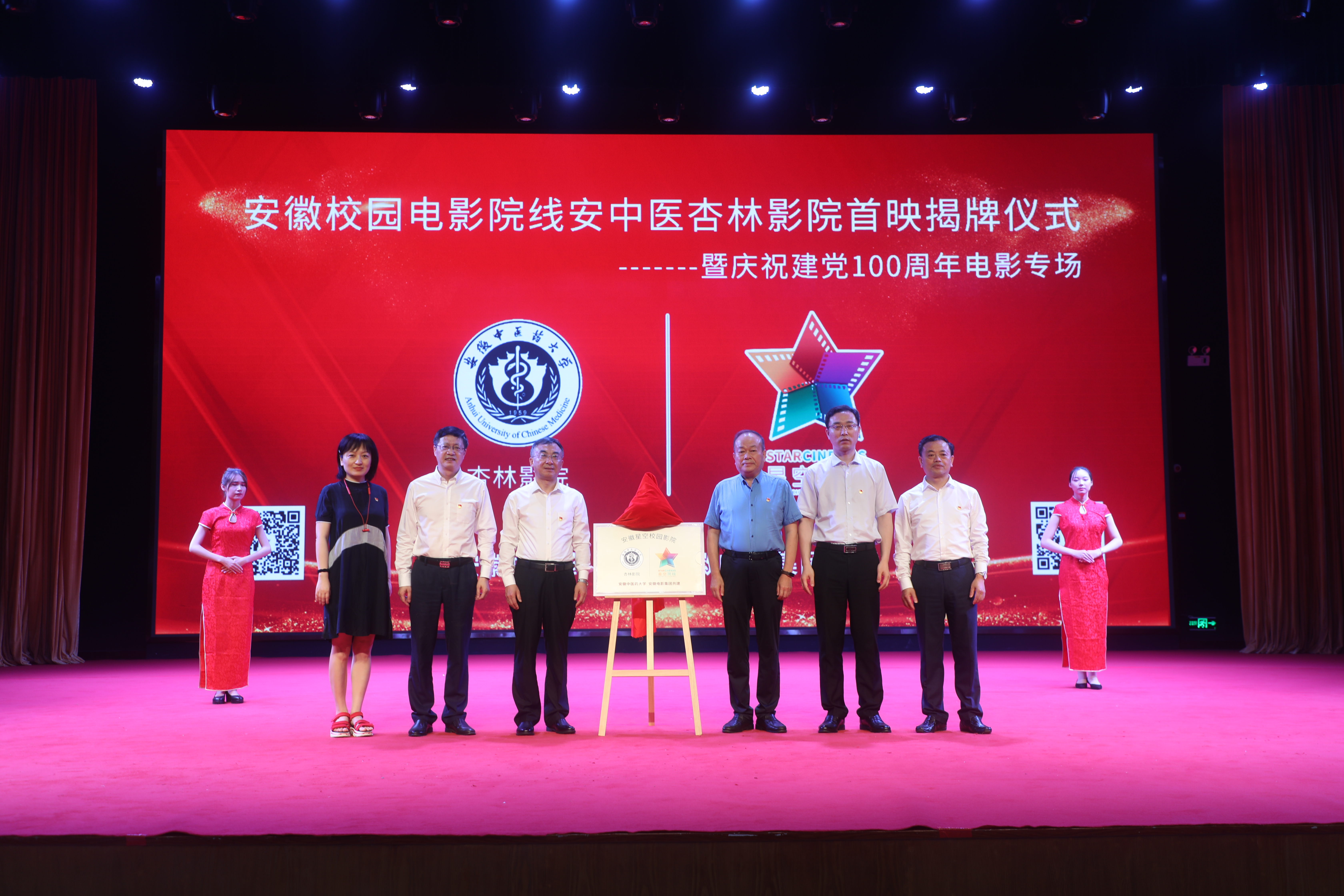 学校党委书记王先俊(前排左三)为杏林影院揭牌