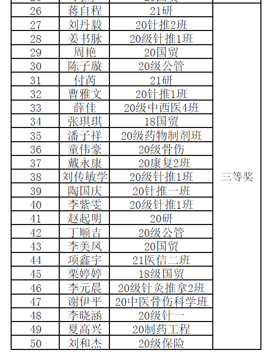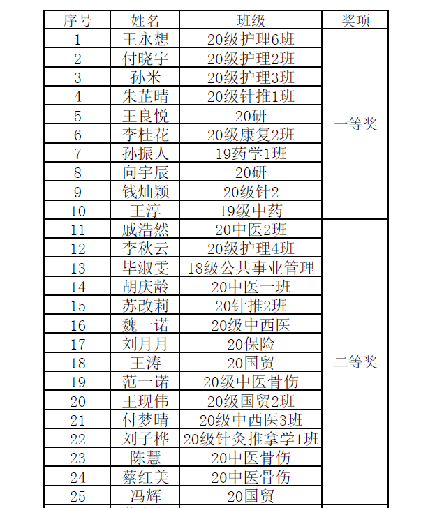 此次征文活动围绕我省巩固拓展脱贫攻坚成果同乡村振兴有效衔接的重点工作,以青年视角,从小切口引入,观察、体会、感悟、陈述我省在巩固脱贫成果一线涌现的先进人物和感人事迹,彰显农村农业农民的新气象和新业绩,全校师生特别是参与评估工作的师生积极参加,共投稿187篇作品,经过校团委组织专家评审打分,根据稿件数量和质量共评选出一等奖10篇,二等奖15篇,三等奖25篇,针灸推拿学院团委、医药经济管理学院团委、护理学院团委获优秀组织奖。(孟南/文图 叶兰兰/审核)